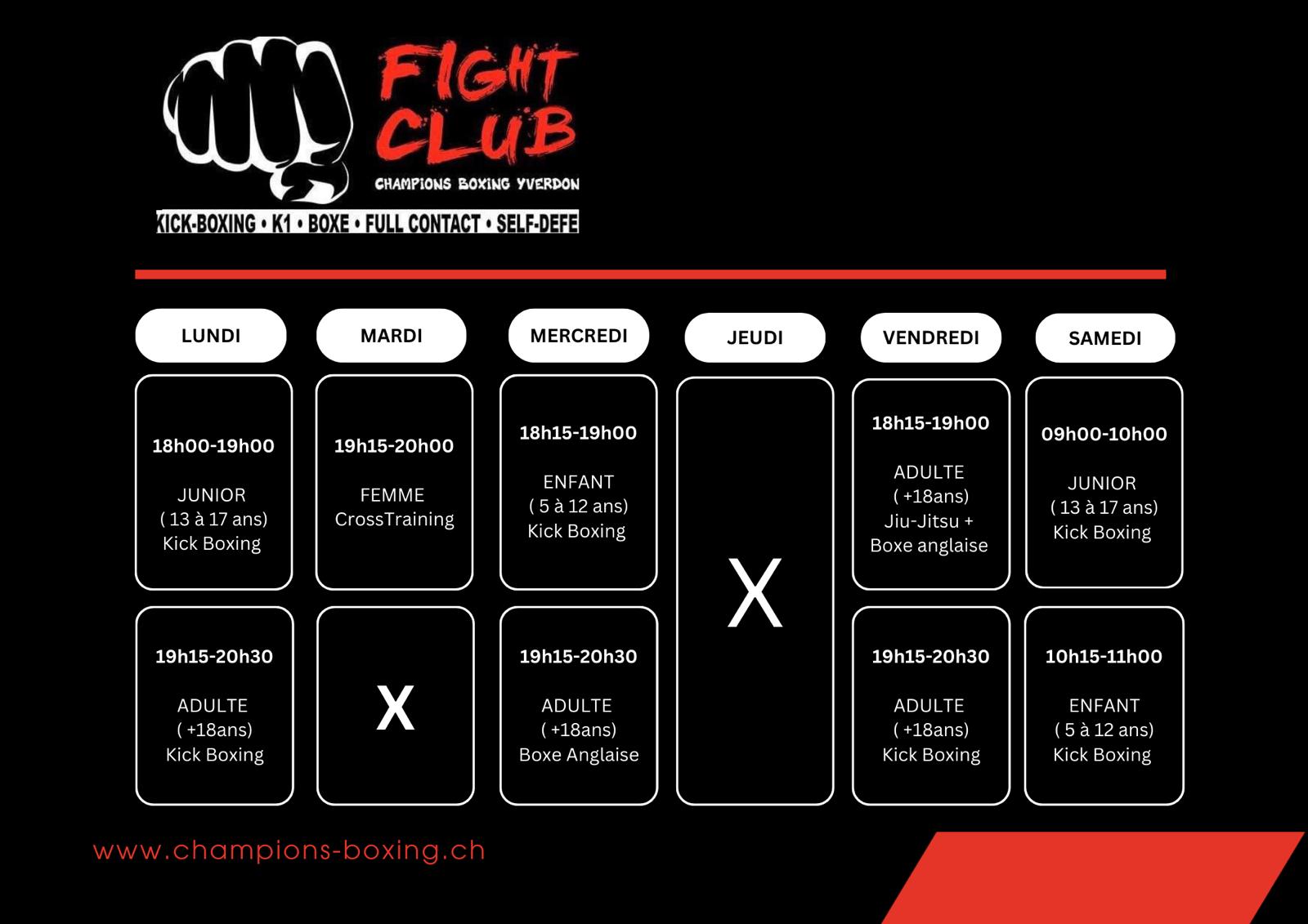 Cours du lundi au samedi – Ambiance conviviale, discipline et motivation garanties !